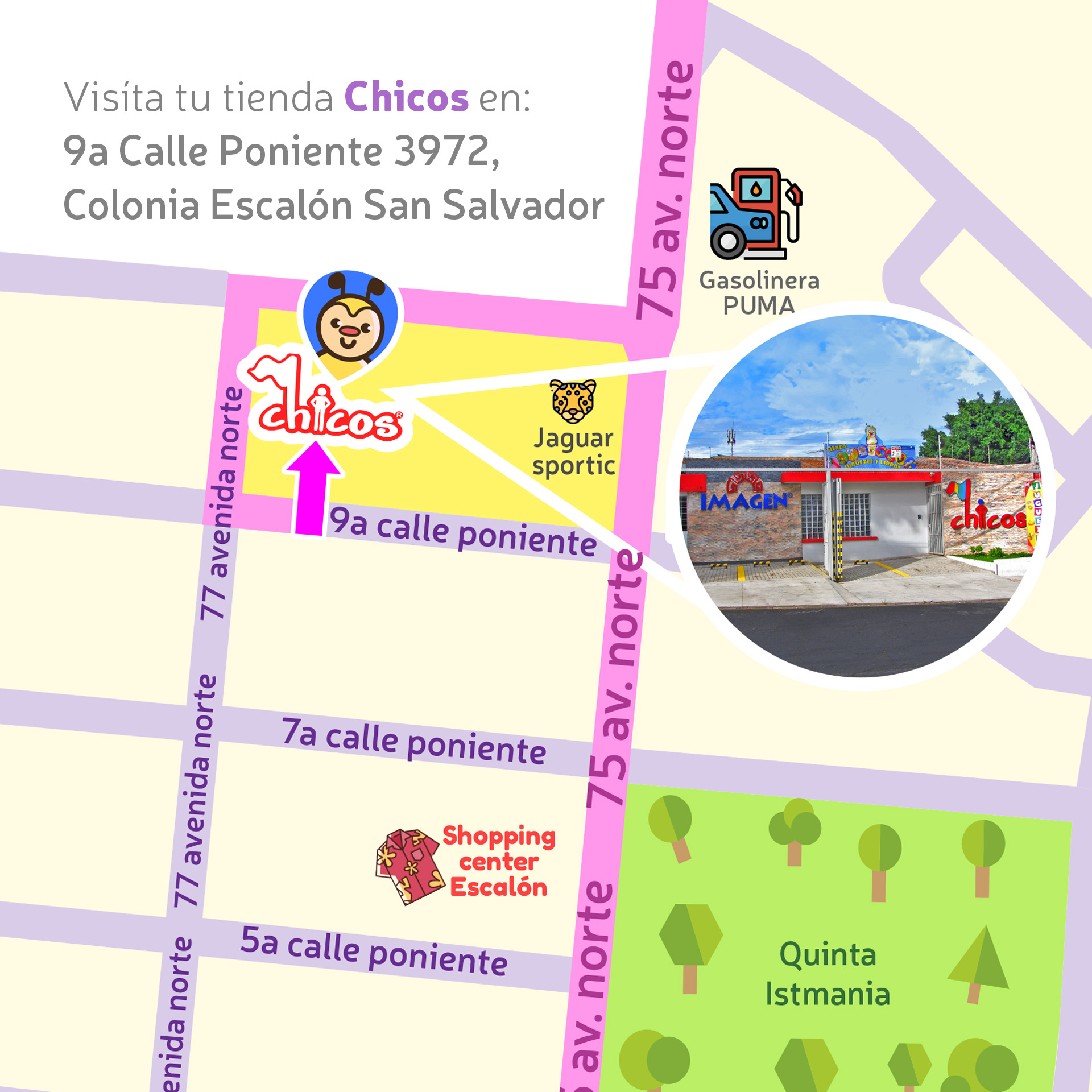 Chicos Juguetes Educativos Juguetes educativos Dirección Llamar Sitio Web Guardar Compartir Compartir facebook twitter Descripción Fotos Características Mapas Descripción Chicos Imagen, ¡juega y aprende!Creamos y seleccionamos juguetes educativos para el desarrollo Galería de imágenes Características Dentro del Área Metropolitana Entregas a domicilio Entregas interdepartamentales Formas de pago digitales Recoger en tiendas Tienda física Mapas Map Street View Dirección Cerrar Información general Dirección 9 Calle Poniente # 3972, Colonia Escalón, El Salvador 2264 9463 iendachicosimagen@gmail.com juguetes.chicosimagen.com/shop Síguenos Ahora Cerrado lunes8:00 am - 5:30 pmmartes8:00 am - 5:30 pmmiércoles8:30 am - 5:30 pmjueves8:00 am - 5:30 pmviernes8:00 am - 5:30 pmsábado9:00 am - 1:00 pmdomingoCerrado Estadísticas 184 Views enero 15, 2025